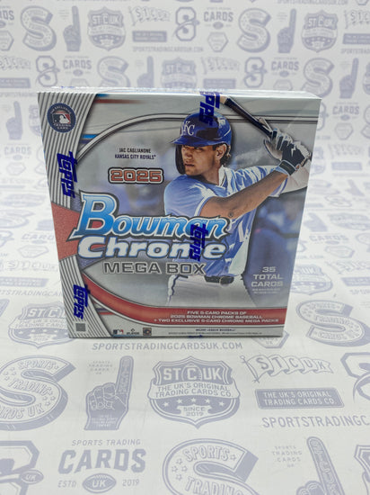 Look for limited Mega Box Exclusive Chrome Autographs featuring the top prospects from across 2025 Bowman Chrome.