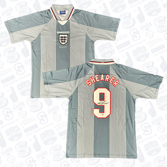 Alan Shearer Signed 1996 England National Team Away Soccer Jersey #9 – Beckett COA