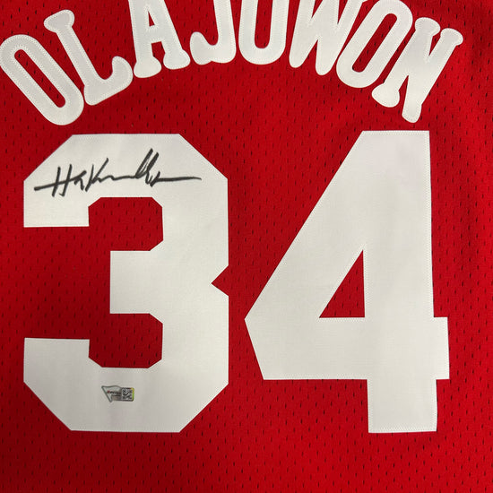 Hakeem Olajuwon Houston Rockets Autographed Mitchell & Ness Red 1993 - 94 Swingman Jersey